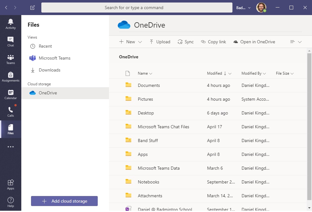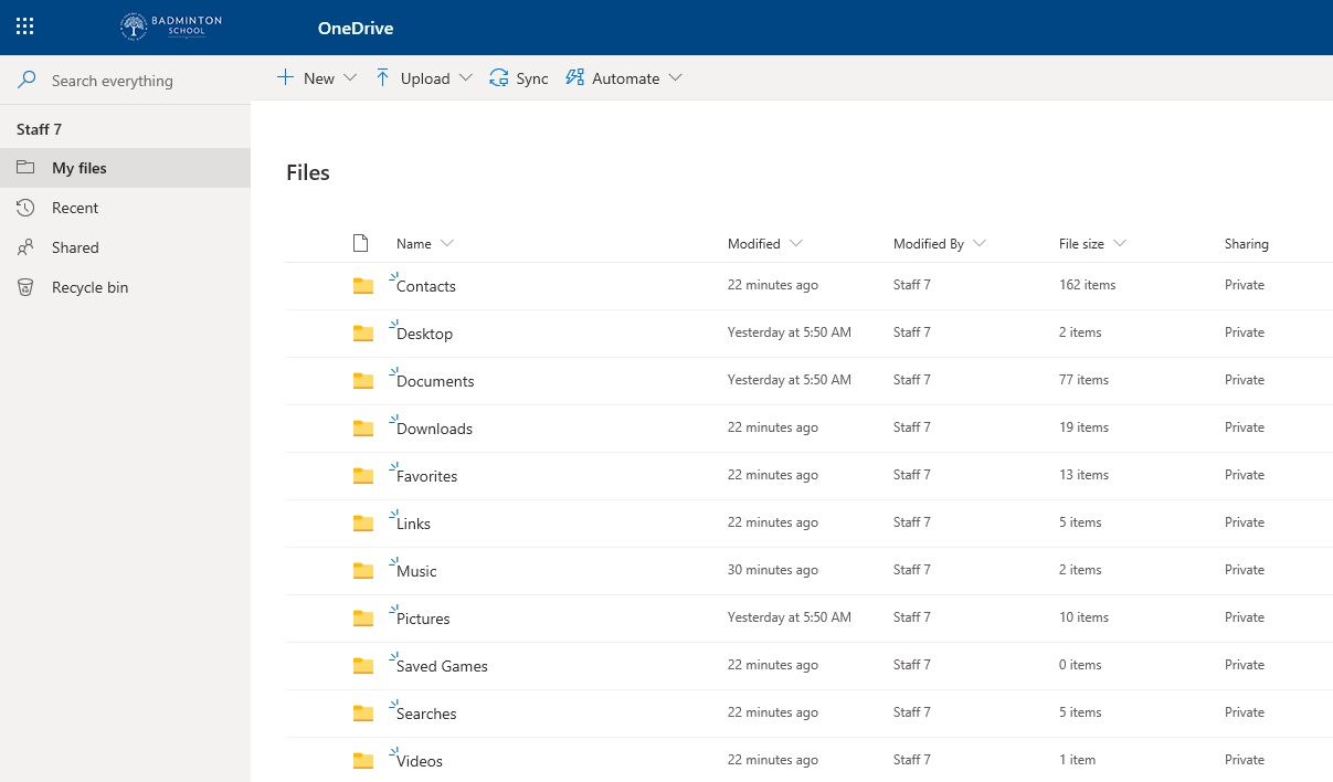 - Instead you will see a OneDrive - Badminton School option in the left hand side that will contain all your old files.