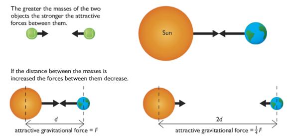 Newton proposed that there was an attractive force between any two objects caused by the masses of the objects. He called this force gravitational force.