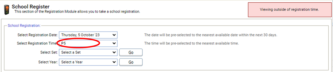 STEP 4 When you change this you will be told that you are viewing outside of registration time