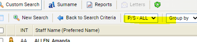 Make sure P/S – ALL is selected to make sure all staff are visible