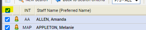 Select the top-left most tick box to select all staff