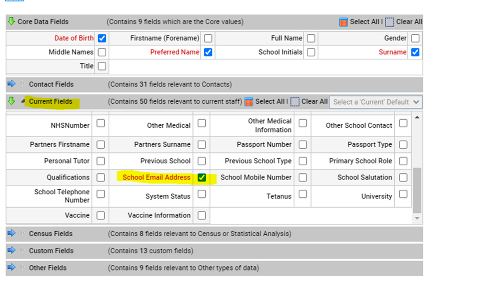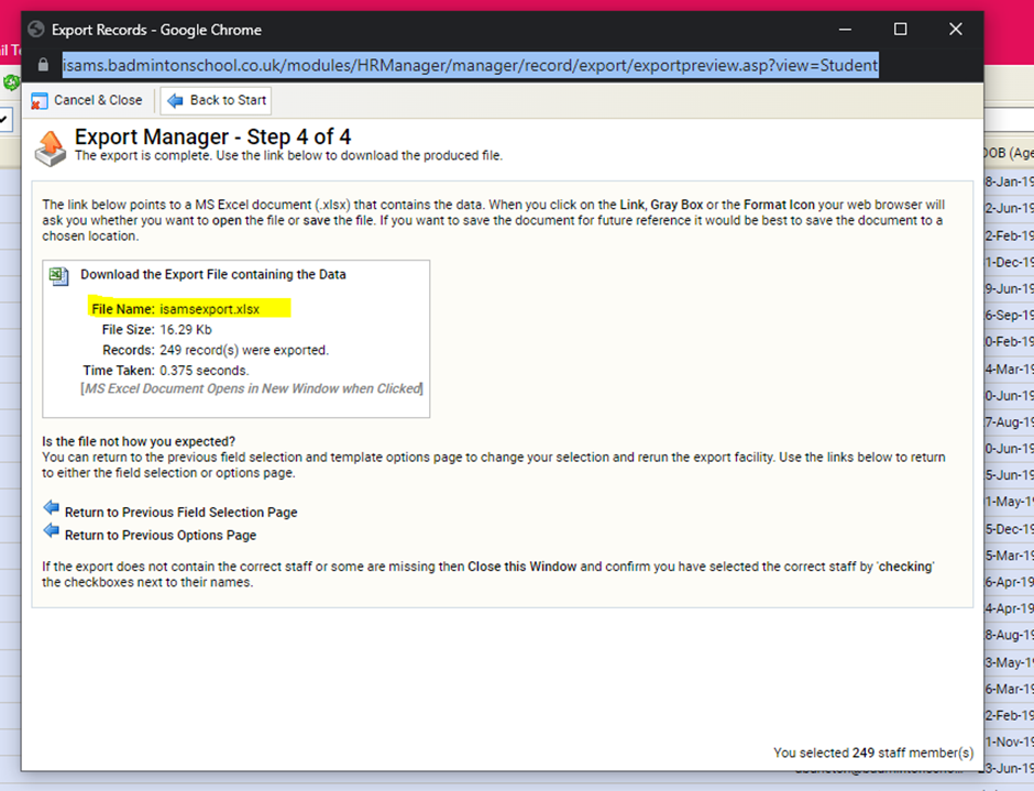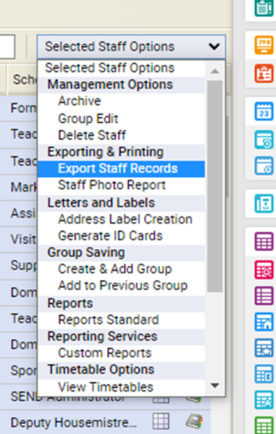 From the right-side drop-down box, select Export Staff Records