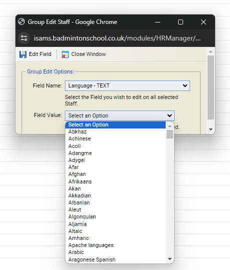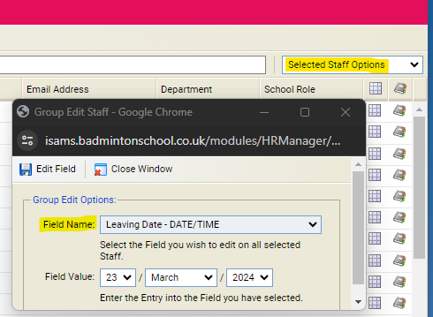 When editing/updating fields in iSAMS, you have the option to add entries for several members of staff at the same time (select one staff field and the same entry to that group).