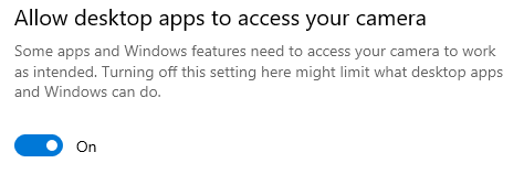 Step 3 - Make sure Allow apps to access your camera and Allow desktop apps to access your camera are both turned on